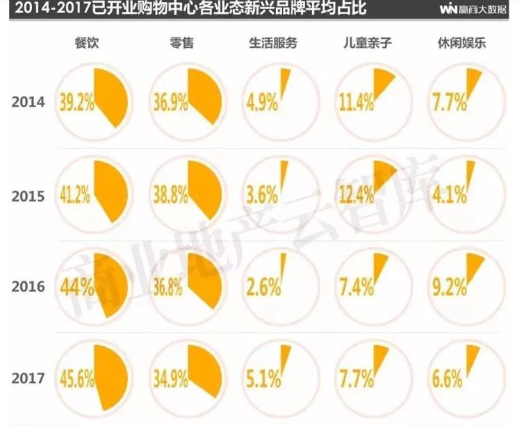 2014-2017年,購物中心各業(yè)態(tài)占比發(fā)生了哪些變化?新興品牌占比多少?哪些新興業(yè)態(tài)正成為招商熱點?