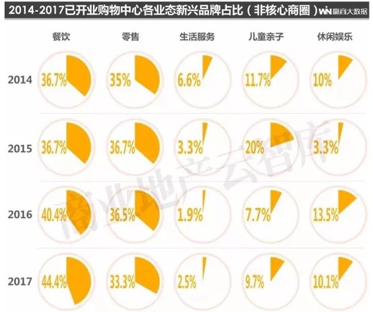?非核心商圈購物中心各業(yè)態(tài)新興品牌占比