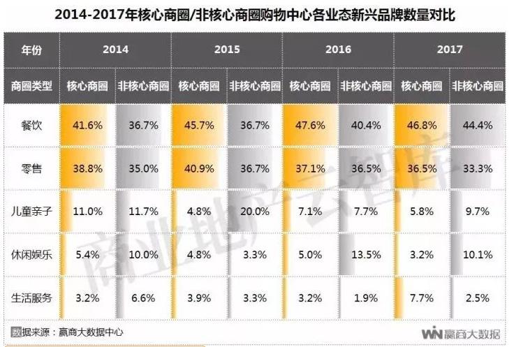 ?2014-2017核心商圈、非核心商圈購物中心新興品牌對比