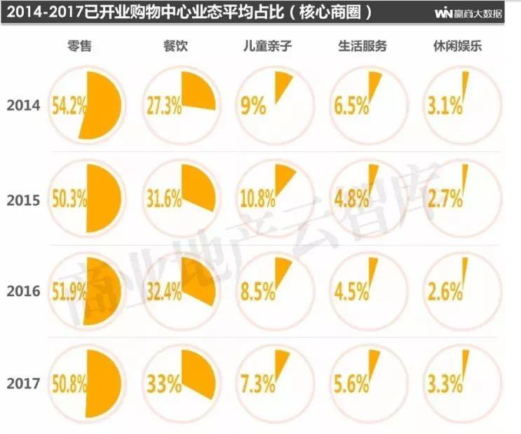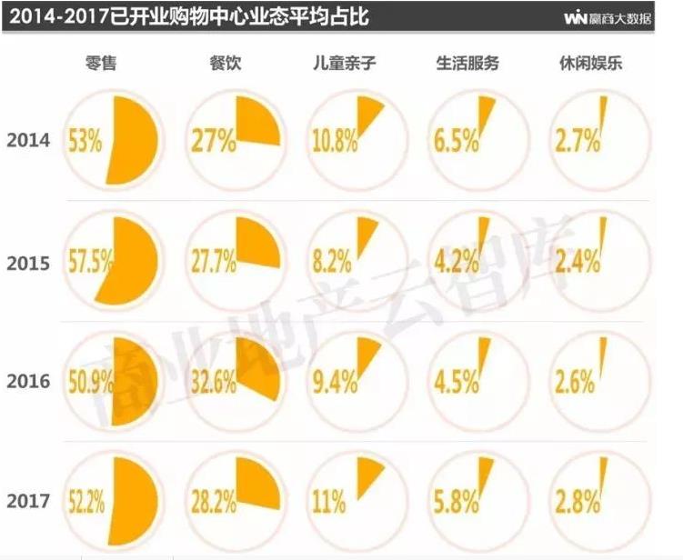 從2014-2017年購物中心業(yè)態(tài)整體數(shù)據(jù)來看,