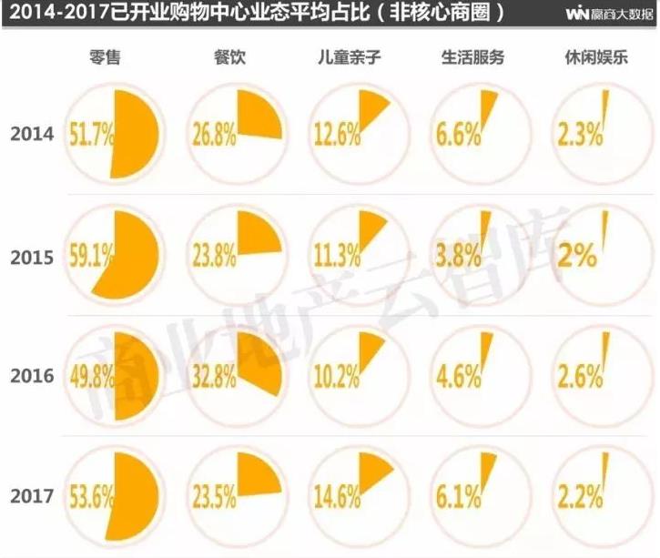 ?2014-2017核心商圈、非核心商圈購物中心業(yè)態(tài)對比