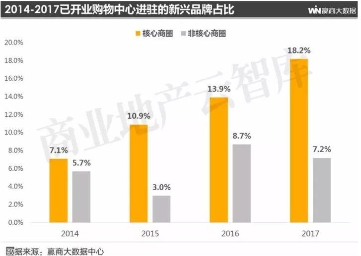 ?2014-2017核心/非核心商圈進(jìn)駐的新興品牌數(shù)量對比
