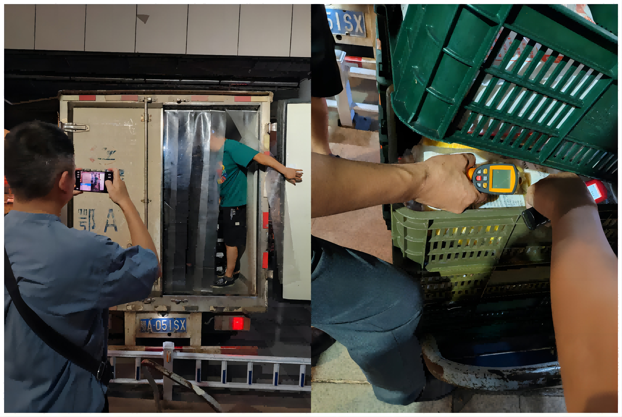 在夜巡檢查過(guò)程中,管理人員兵分兩路,隨機(jī)抽查了便利店、大倉(cāng)儲(chǔ)、小超市門(mén)店,對(duì)物流公司車(chē)輛夜配服務(wù)情況、車(chē)輛制冷機(jī)保開(kāi)啟狀況、車(chē)輛隔溫簾安裝使用、車(chē)輛內(nèi)外衛(wèi)生情況、車(chē)箱溫度、商品溫度進(jìn)行了檢查。巡查中,冷藏車(chē)廂測(cè)溫均在10℃以下,冷凍保溫箱溫度-30℃以下,商品抽查情況完好,車(chē)輛溫度均在冷鏈配送范圍內(nèi),相關(guān)門(mén)店反饋滿意度較高。
