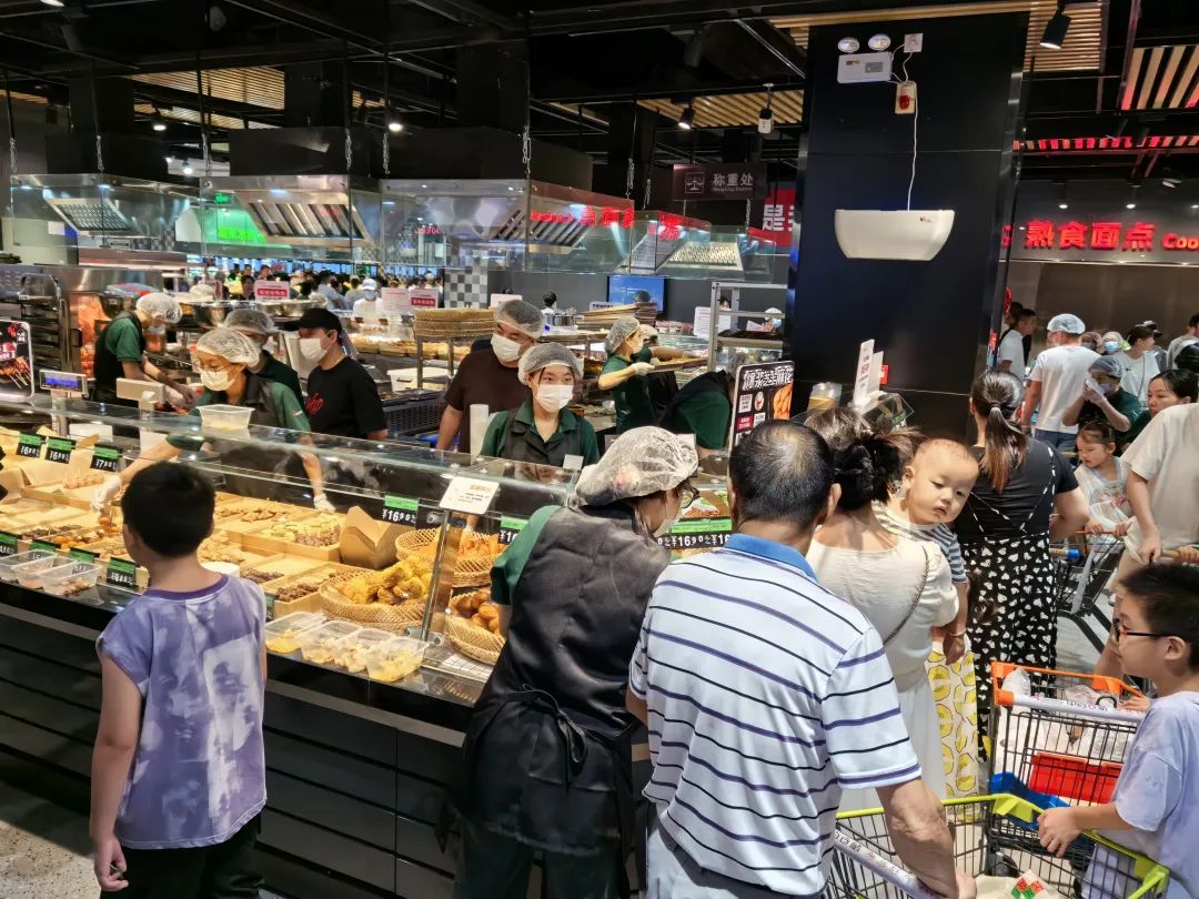 當(dāng)日9點,廣場店內(nèi)已經(jīng)人流洶涌。各種新穎有趣的商品讓顧客目不暇接。中秋將至,各種品牌、各種形狀的月餅琳瑯滿目,讓人驚艷的,這里還有與迪奧聯(lián)名的新款月餅;即將進入開學(xué)季,做成語文、數(shù)學(xué)、英語書籍形狀的麻烘糕,讓年輕媽媽們動心了,買上一份,可以在不經(jīng)意之間提醒孩子要收心準備學(xué)習(xí)。此外,小巧精致的剃須刀、口感獨特的爆漿麻花、純芒果制成的冰淇淋,清淡健康的日式燒鳥,也吸引不少人試用試吃。