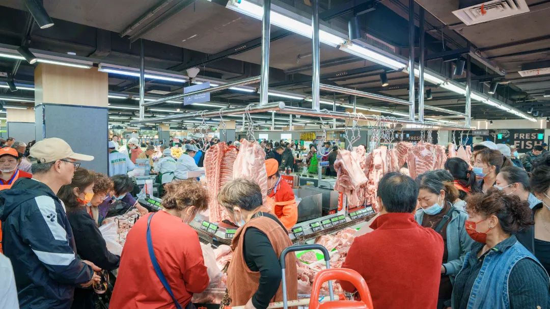 開業(yè)首日,生鮮區(qū)的變革尤為引人注目。蔬果區(qū)域春鮮時令與地域特色并重,系列春菜批次上新,讓“您”直觀感受春天的第一口鮮活;智利西梅、進口紅提、熱帶水果、烤榴蓮等,備受市民青睞。鮮食類別高鮮度商品當日出清,確保每日“新”“鮮”同步,“煙火氣”滿滿。黃油年糕、黑金芝士馬里奧面包、海鹽優(yōu)格面包、大福糕等,成為門店爆款。肉食、水產、干貨類別強化地標、季節(jié)類商品導入,乳山生蠔、茶魚、牧北牛腩、鮮活基圍蝦、漢江黑豬通排等,吸引顧客圍觀選購。