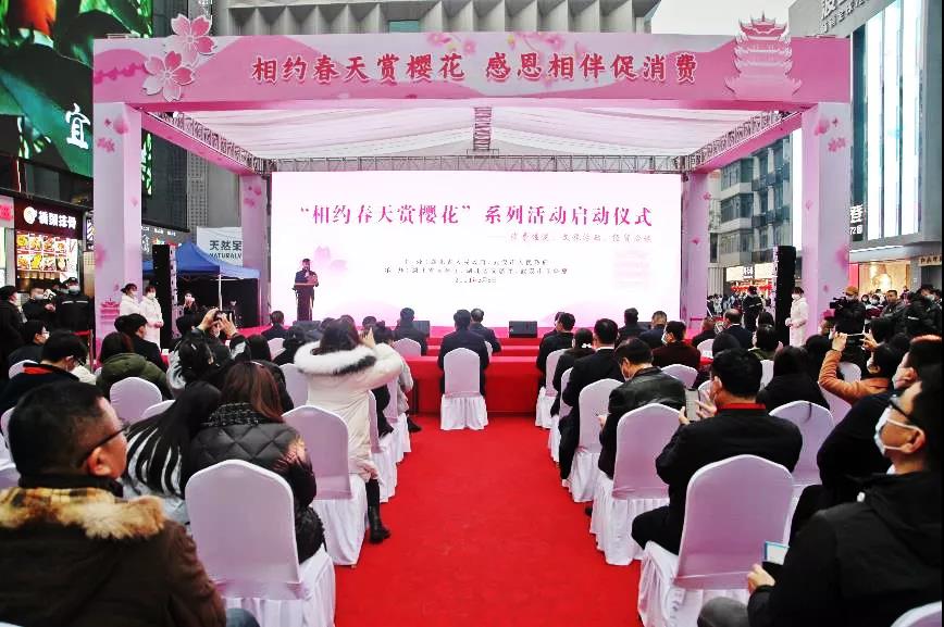 陽春三月,春暖花開,祖國山河,春和景明。3月8日下午,省商務廳組織舉辦的2021“相約春天賞櫻花”系列消費促進活動啟動儀式在武漢市江漢路步行街舉行,省人民政府副省長趙海山宣布2021“相約春天賞櫻花”系列消費促進活動正式啟動。